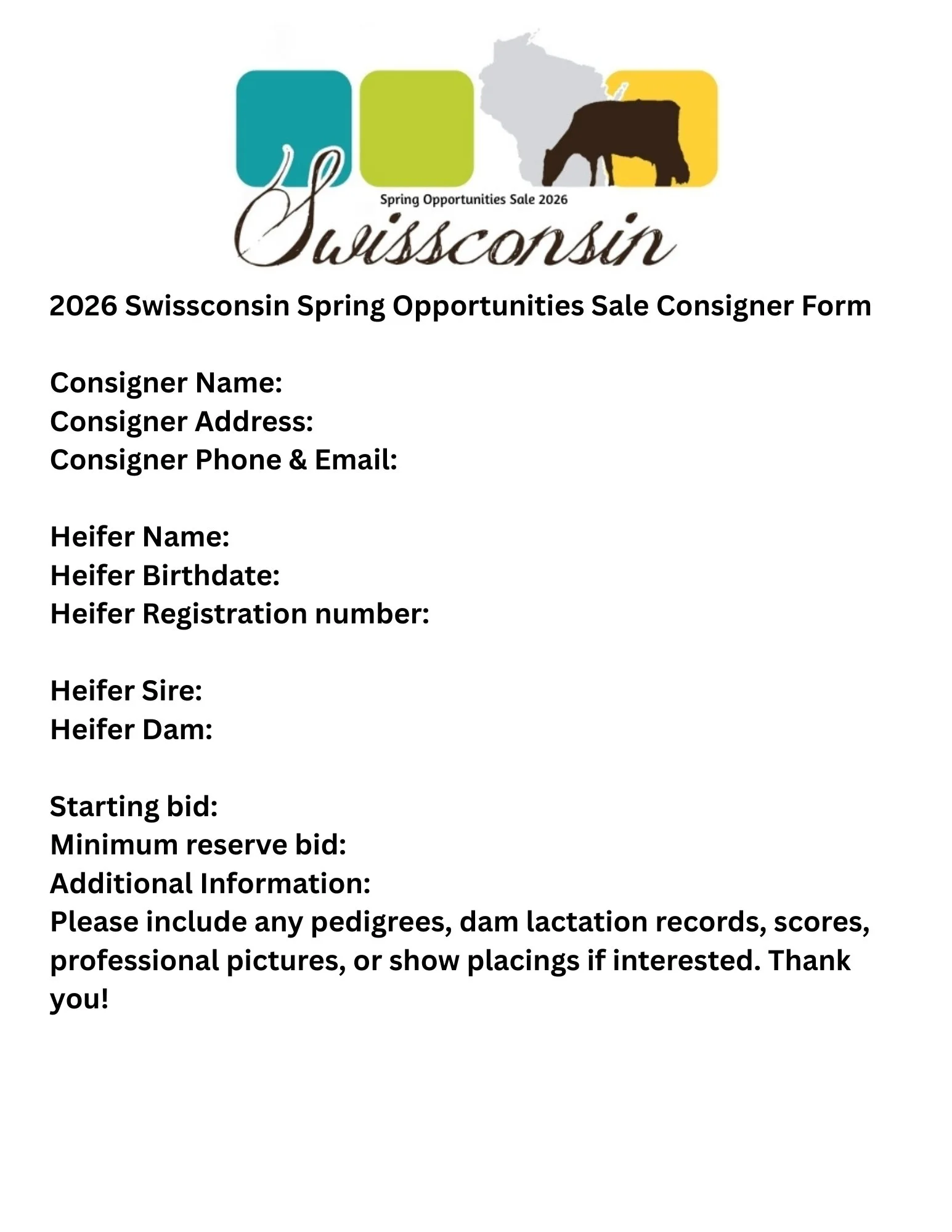 The WI Brown Swiss Association is now accepting consignments for the 2026 Swissconsin Spring Opportunities Sale! Interested in consigning heifers or embryos contact one of the sale committee members below and fill out the consignment form.