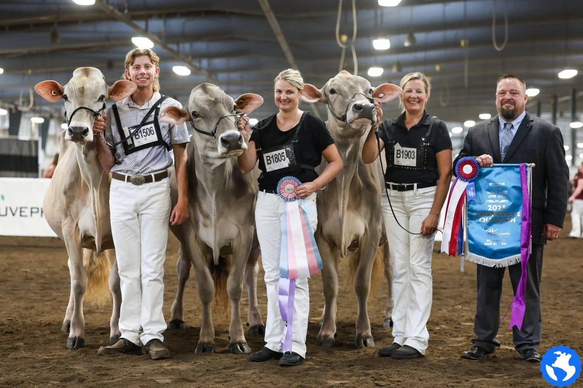 Grand Champion Junior Show- Red Brae SPA Cayenne Neola, 1st Component Merit Cow, Calli & Wyatt Storms